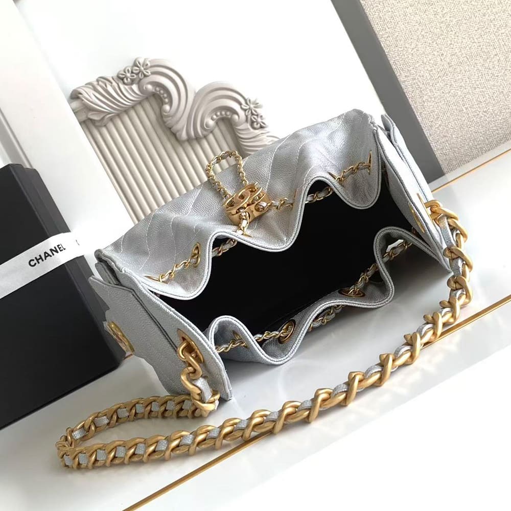 Metallic Grained Calfskin & Silver-Tone Metal