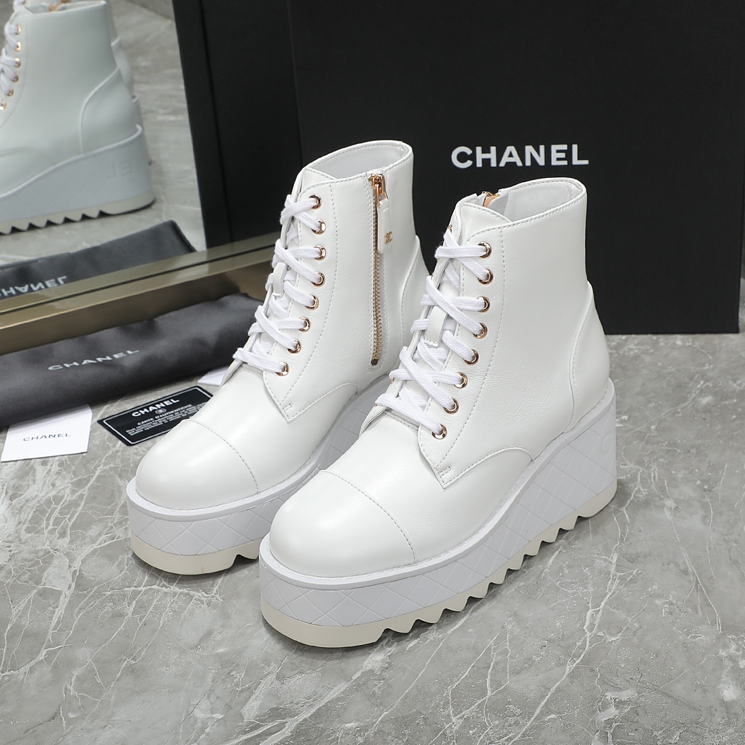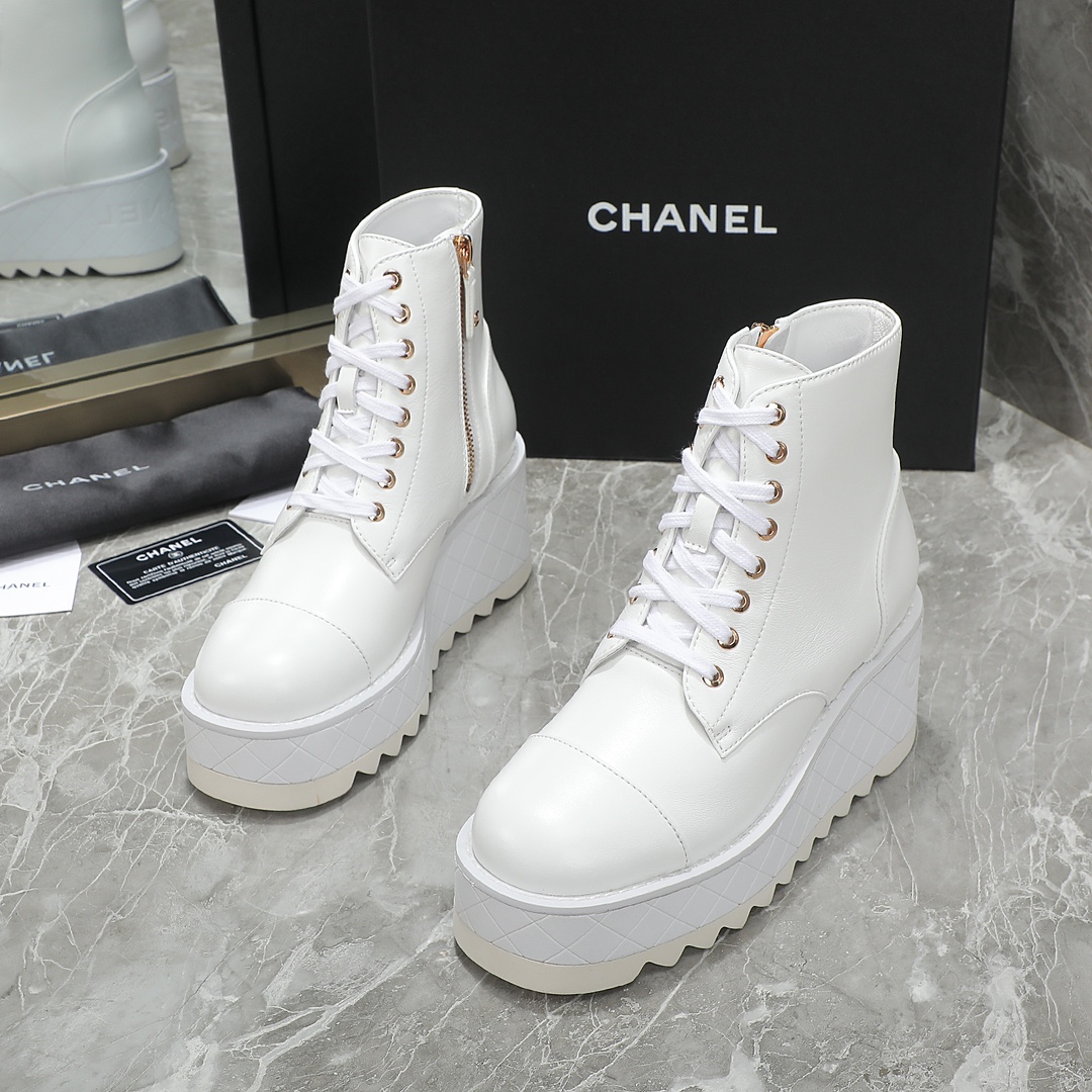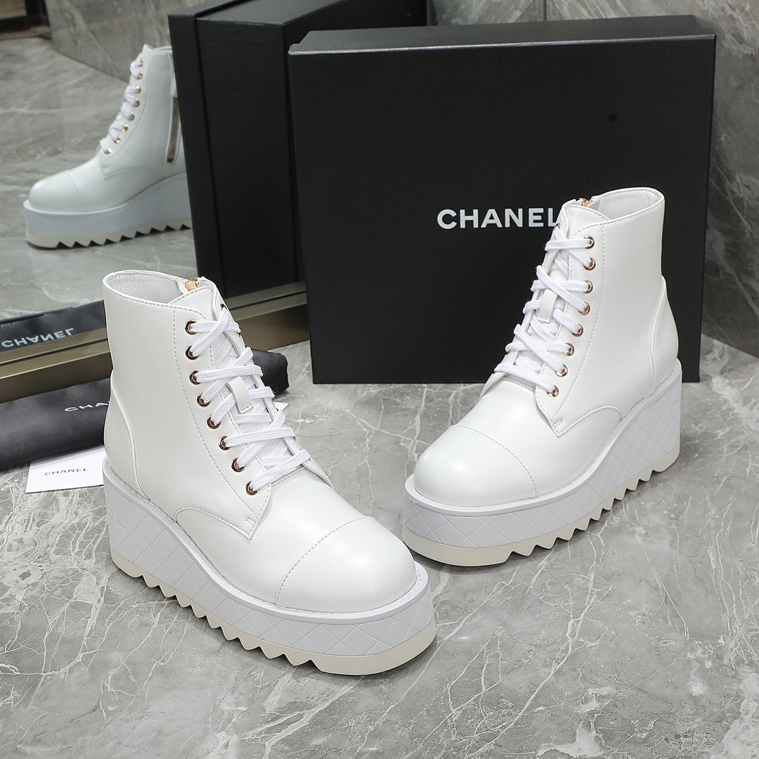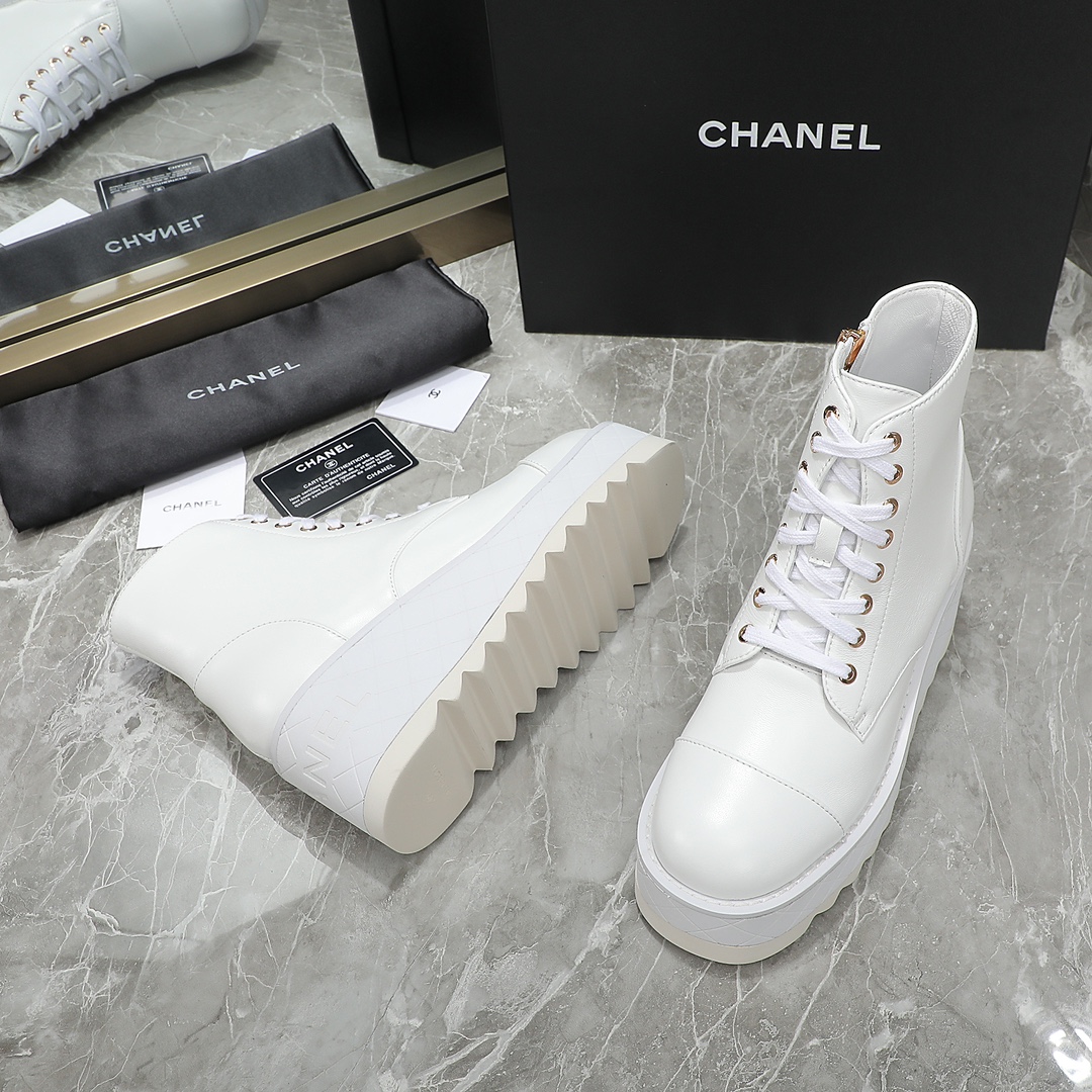 Chanel Calfskin Pearl Cap Toe Ankle Boots