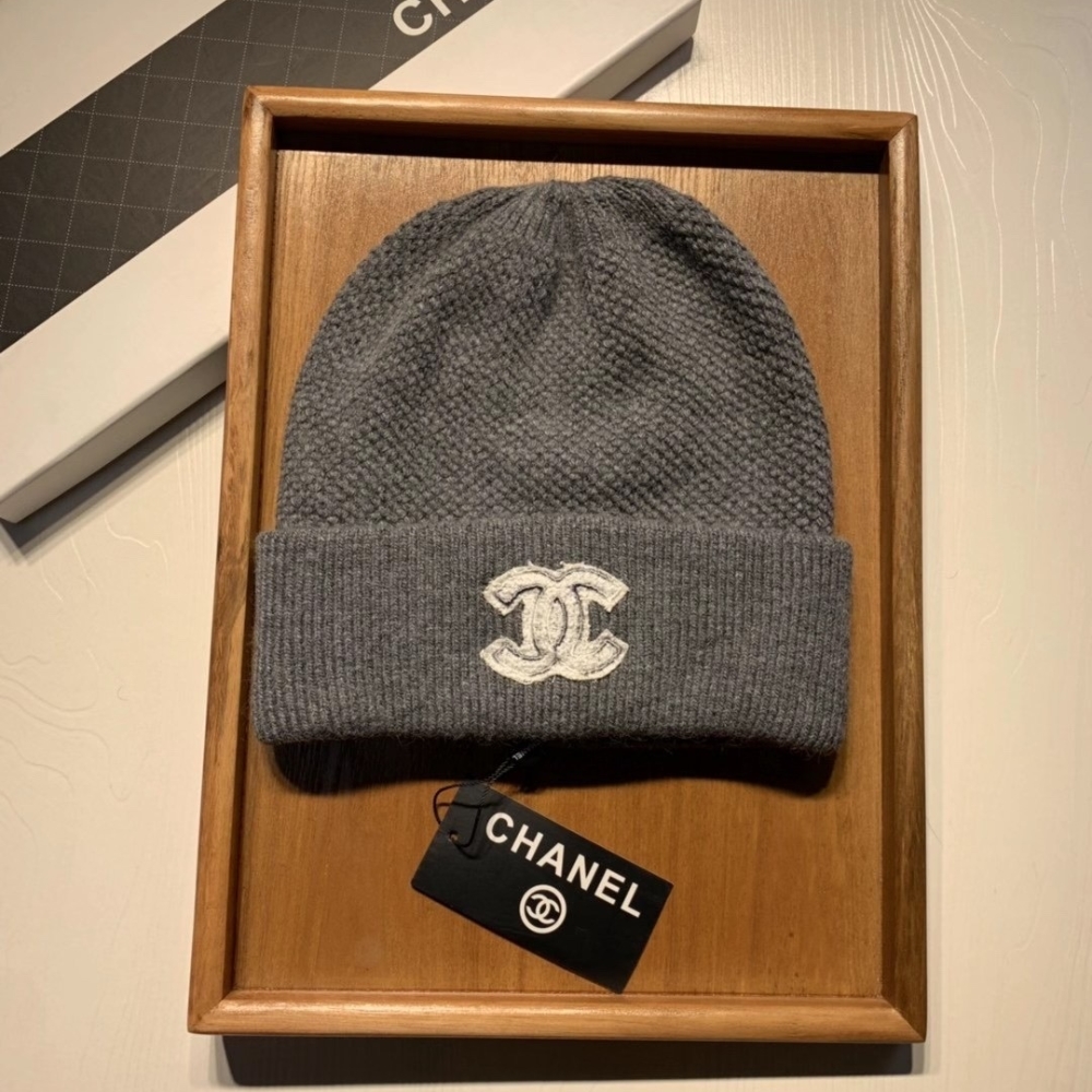 CHANEL CC LOGO CASHMERE BEANIE GRAY