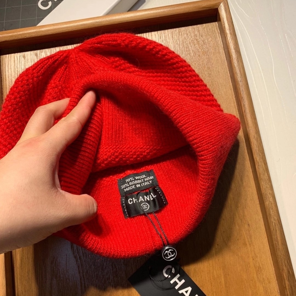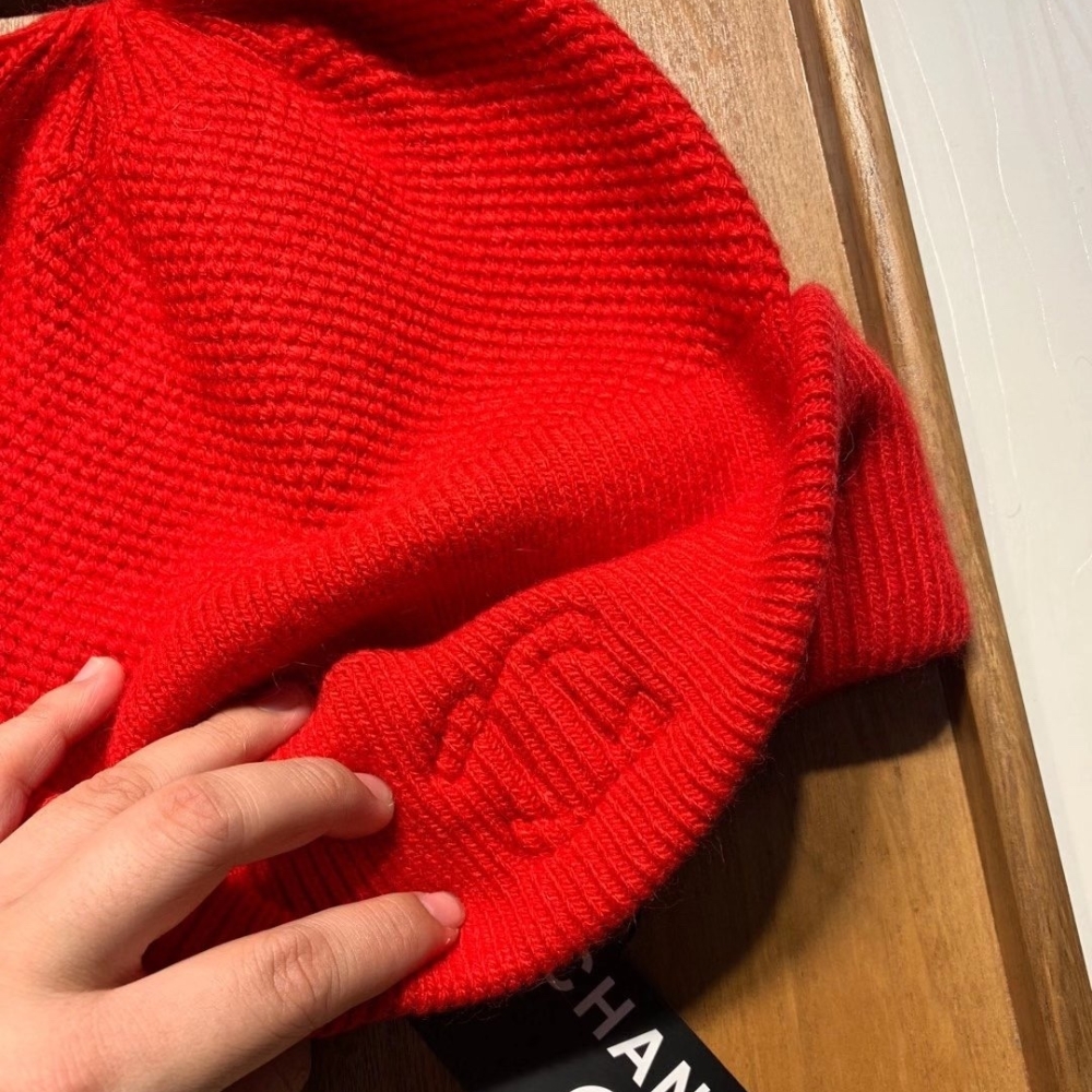 CHANEL CC LOGO CASHMERE BEANIE RED quantity