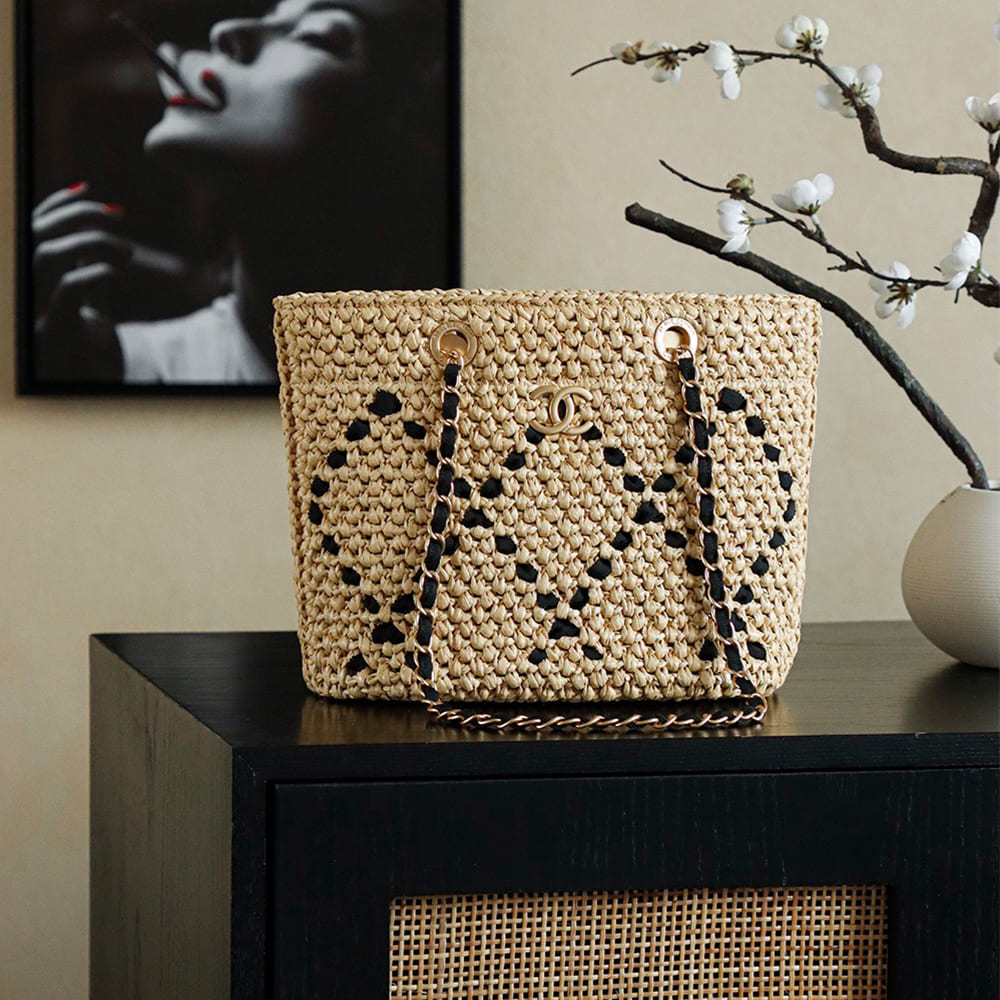 Braided Raffia, Cotton Grosgrain Ribbon & Gold-Tone metal