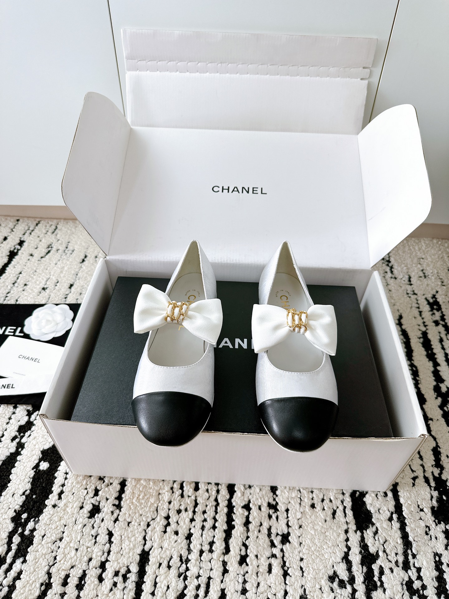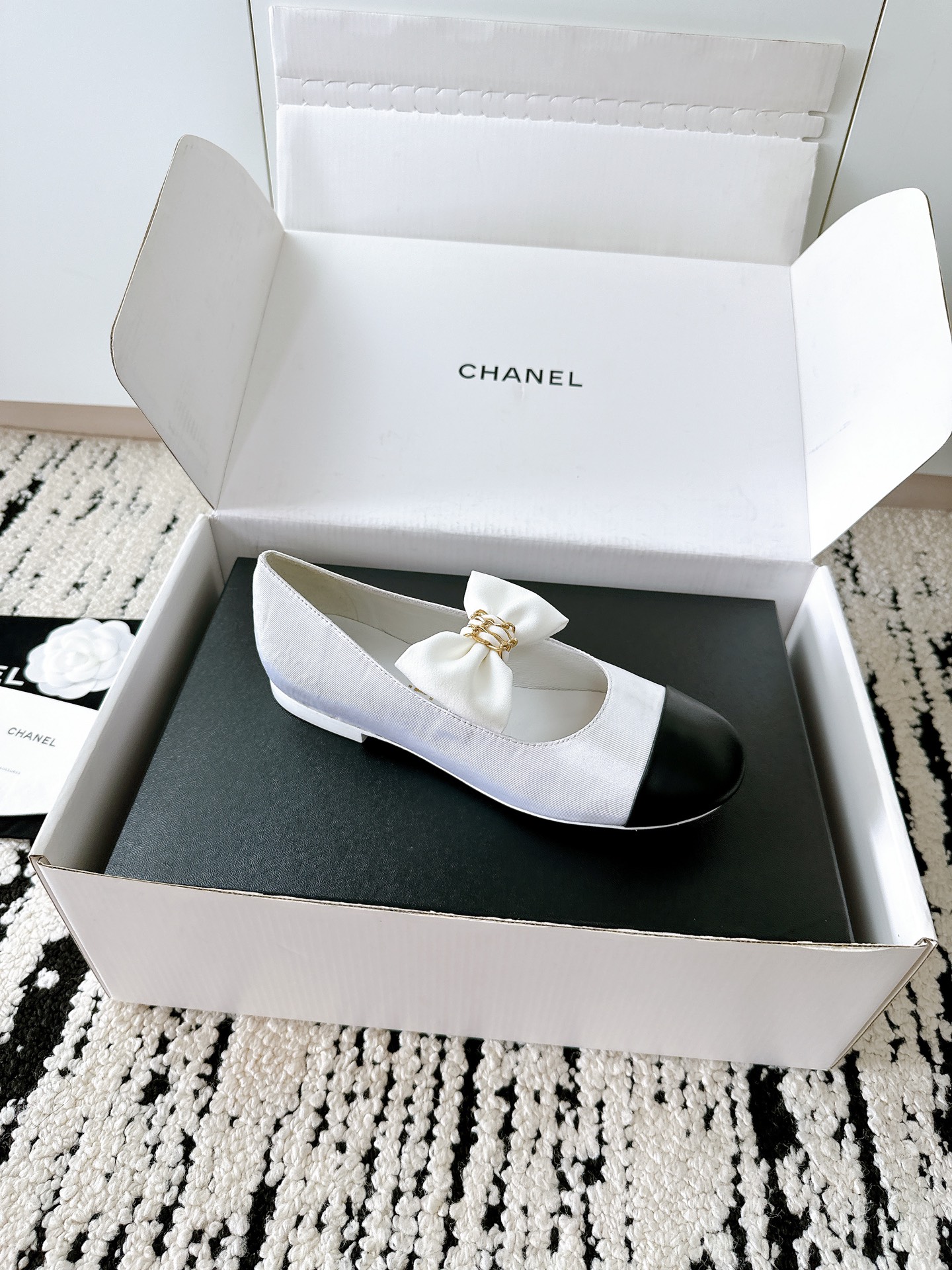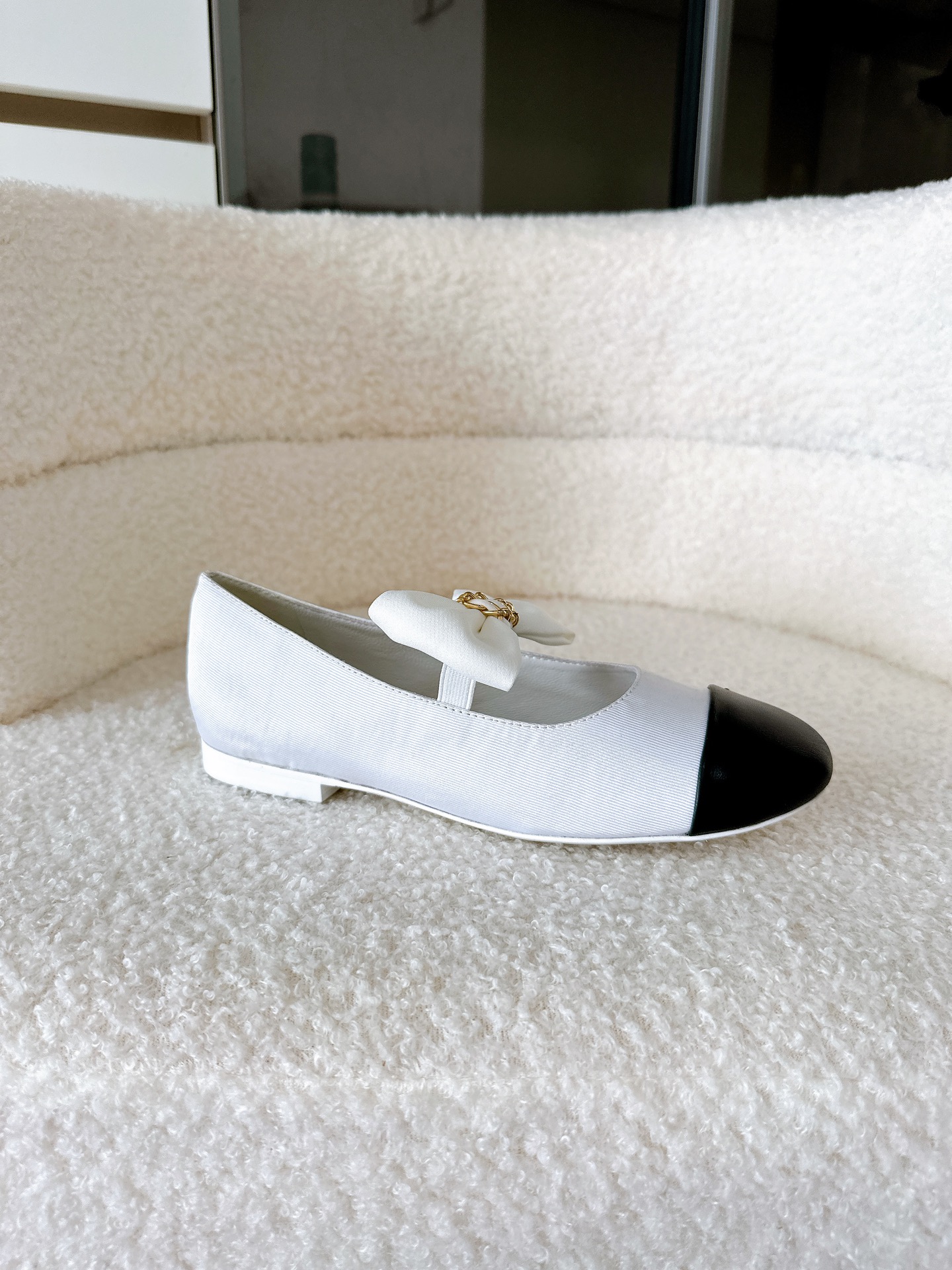 Chanel White Jennie Ribbon Flats