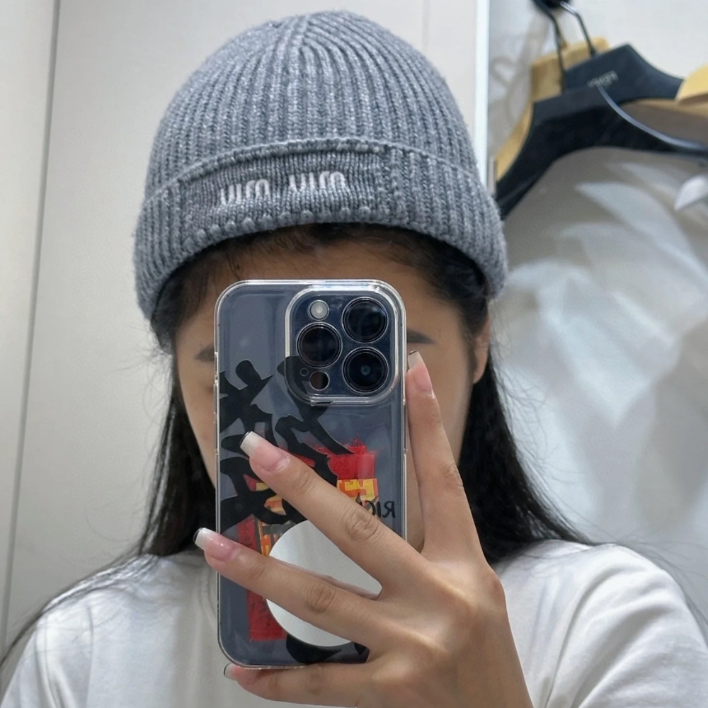CHANEL CC LOGO CASHMERE BEANIE GRAY